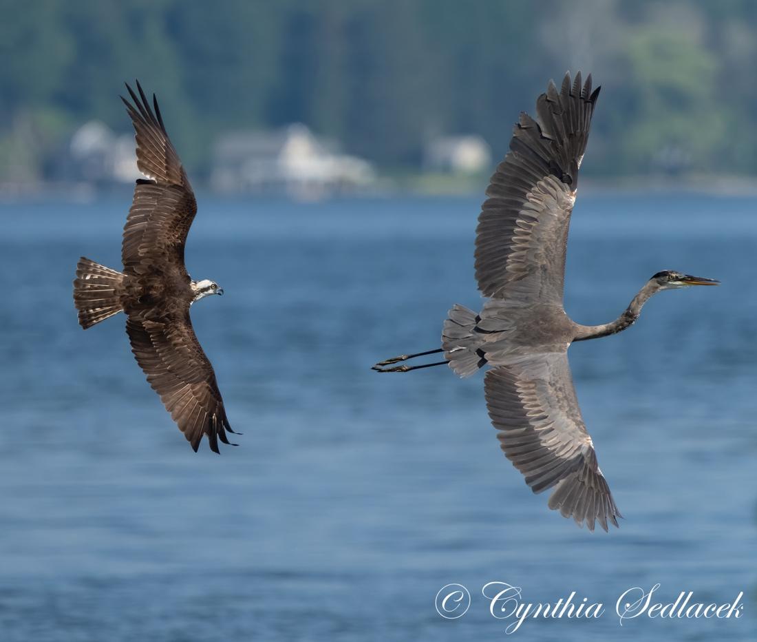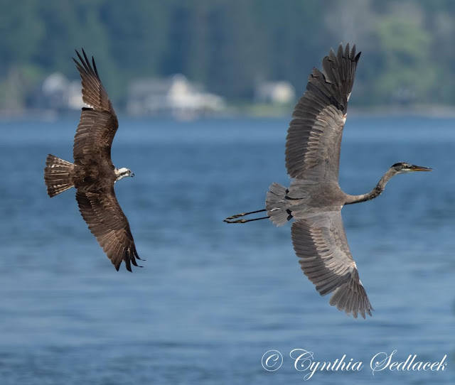 The territorial Inlet nest male chasing a great blue heron again, courtesy of Cindy Sedlacek.