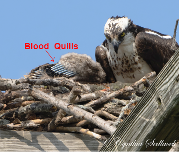 Adult feathers will emerge from the blood quills, courtesy of Cindy Sedlacek.