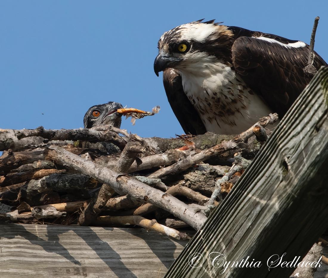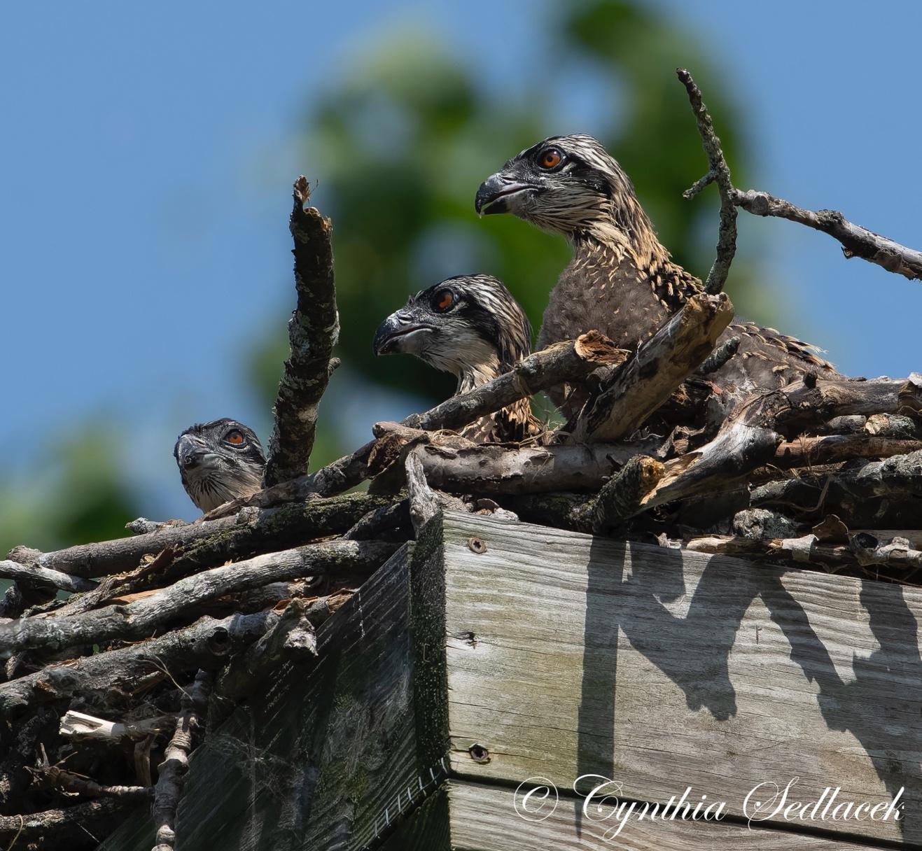 Young Ospreys are under tremendous selection pressure to grow quickly and take to the sky to escape predation and prepare for migration. In two months, the young Ospreys will be as big as their parents and getting ready to leave the nest. Check on the nests to watch the youngsters grow and mature.